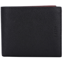 皮夾、名片夾,BALLY,男仕名牌包、配件,精品手錶、珠寶配飾,BALLY 黑色壓紋牛皮對折短夾(紅色卡層)