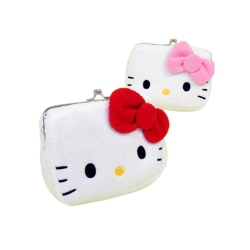 Sanrio HELLO KITTY臉型絨毛珠扣化妝包(二色)