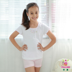 | 【Anny pepe】女童小花短袖套裝(白)_精梳純棉家居服 |