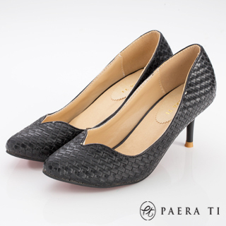 【PAERA TI】V型尖頭編織高跟鞋-兩色(黑/卡)