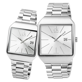 CK Calvin Klein Herrenuhr 凱文克萊方形鋼帶對錶-銀