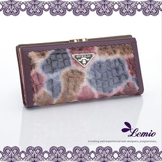 momo,momo購物台,momo購物網>【Lemio】時尚韓版包包 珍珠魚鱗紋 彩繪真皮 二折口金長夾(幻紫豹紋)