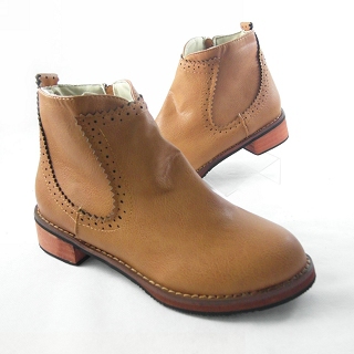 【Moscova】秋冬百搭 雕花邊側拉鏈純色短靴(黃色)商品訊息描述: