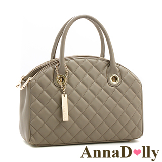 【ANNA DOLLY】時尚名媛Pretty菱格手提包(清新灰)