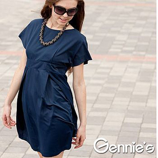 momo,momo購物台,momo購物網>【Gennies奇妮】名媛風潮連袖花苞孕婦洋裝(藍C2Y19)