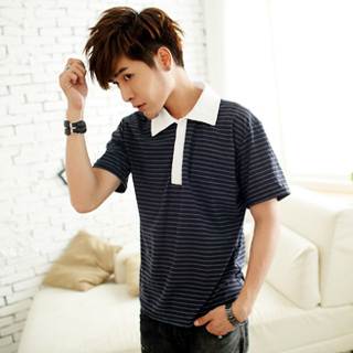 momo,momo購物台,momo購物網>【Jimmy&Wang】男生最愛雙藍條紋POLO衫(網)