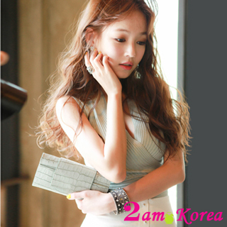 【預購2am Korea】深V領交叉直紋針織背心(五色)商品訊息描述:
