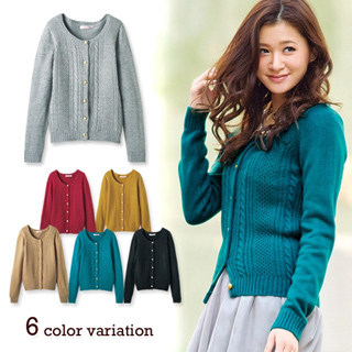 momo,momo購物台,momo購物網>【現貨 日本portcros】可愛雅緻金色鈕釦開襟毛衣針織外套(灰色)