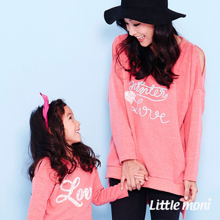 Makids親子裝系列休閒時尚的親子裝系列岔肩的清新露肩設計蕾絲加鎖鍊繡 融合甜美與個性
