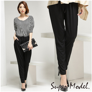 momo購物台,momo購物網:【名模衣櫃中大尺碼】韓版休閒百搭哈倫褲-黑色(適穿M-XXL)