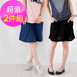 momo購物台,momo購物網:【衣心衣意中大尺碼】輕甜魅力 素面完美腰圍口袋裙2件組(黑-藍FC1A3133)