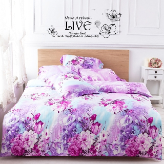 視覺:優雅的花卉圖案與高雅的粉紫色調,創造柔和雅致的寢室氛圍。