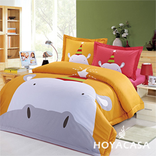 momo購物台,momo購物網:【HOYACASA 俏皮河馬】單人四件式純棉兩用被床包組