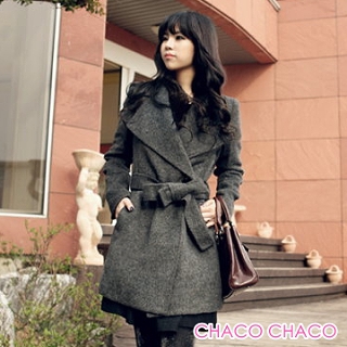 momo購物台,momo購物網:【現貨+預購CHACO韓國】2WAY大翻領單扣綁帶羊毛大衣外套CLCD-C-10(灰色SML)