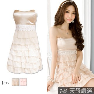 momo購物台,momo購物網:【天母嚴選】絲緞X多層雪紡平口禮服(共二色)