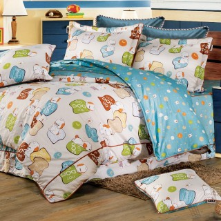 【夢工場】Q寶比比精梳棉五件式床罩組(雙人)
