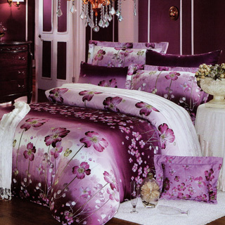 momo購物台,momo購物網:【巴麗維亞】紫卉綻放(特大100%天絲TENCEL四件式兩用被床包組)