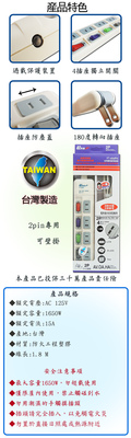 商品訊息功能: 90度平貼插頭二孔電器插座過載安全跳脫裝置符合CNS安檢認證投保3000萬責任險