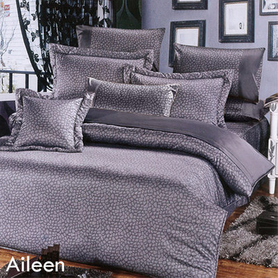 Aileen【灰小格】絲棉雙人加大八件式兩用被床罩組