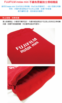 商品訊息功能: 適用:mini 系列拍立得輕巧方便攜帶束口袋設計