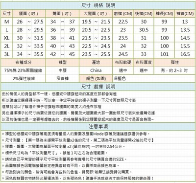 商品訊息功能: 尺寸自M~3L中腰窄管褲深藍刷色有彈性,約2-3吋厚度適中