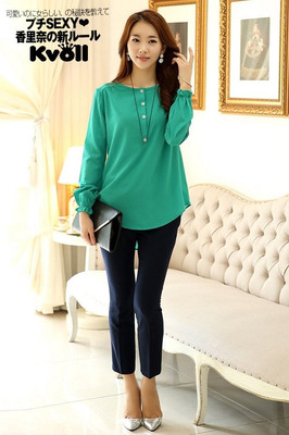 momo,momo購物台,momo購物網>【KVOLL大尺碼】湖綠色前短後束口袖雪紡衫 ★★★