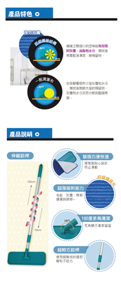 商品訊息描述: ●乾濕兩用:乾拖,靜電清潔、濕拖,奈米清潔