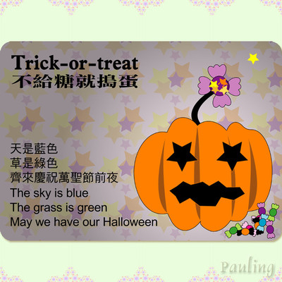 萬聖節是天主教的節日,相當於我們台灣的中元節,10/31是萬聖夜也就是大家說的Halloween,在這個夜晚會有很多打扮成鬼怪的小朋友挨家挨戶的按門鈴,喊著"不給糖就搗蛋",是個非常有趣的文化。