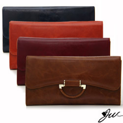 【J,養蔘人家地址.W】原味油蠟牛皮復古壓釦長夾(共8色-咖/紅/橘/藍) 遍尋整座城市 我找不到我的MR. Right 但在J.W裡 我找到了我的MR. Bag