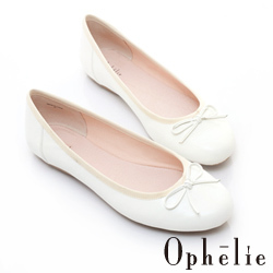 Ophelie-恬逸漫遊-經典蝴蝶結滾邊真皮豆豆鞋~白