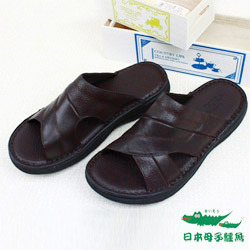 日本母子鱷魚(男)★ 虛實之間魚口牛皮休閒拖鞋 - 老神咖