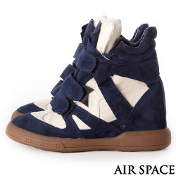 AIR SPACE★超人氣韓款~麂皮內增高魔鬼氈泡芙高筒運動鞋-白藍