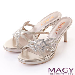 MAGY 優雅氣息無限蔓延 亮麗鑽花高跟拖鞋-金色
