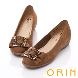 ORIN 歐美時尚 蝴蝶結幾何方型釦飾娃娃鞋-棕色