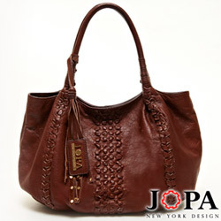 JOPA 牛皮花朵包-咖 柔滑圓弧線條設計,讓底部寬大方便收納,iPad2保護背蓋,更讓包款優雅呈現浪漫花朵風情。搭配簡單編織手法點綴,猶如花朵中的小花蕊,甜蜜綻放。 |