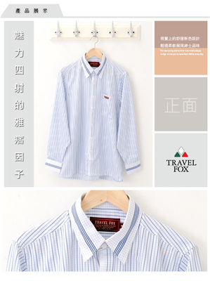 momo,momo購物台,momo購物網>【Travel Fox 男裝】旅狐衣 微漾 羅紋袖口長袖襯衫(淺藍條) ★★★