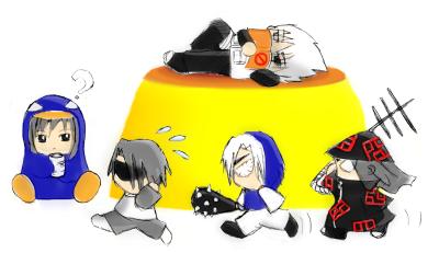 「好!小幽負責使用無線電和阿也保持聯絡。」浪跡指派著每個人,「小扇,妳和小塵、小蘊負責會場佈置,至於死神妳和阿罪……嗚哇──!!」浪跡一語未迄,馬上被阿罪從後面抓住雙手,死神妹妹在他嘴邊放了一條手帕,下一刻浪跡便癱軟下去。