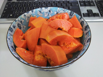 (木瓜照片一:未切時)剛從水果行買回這顆木瓜黃澄澄的看得我口水直流颱風過後天氣熱切一切,放入冰箱裡等會兒就可以拿出來吃一大碗,真開心話說這幾個月來偶爾會將每餐三分之...