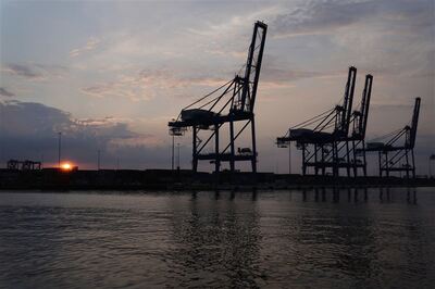巴爾的摩港(Port of Baltimore)。(圖/美聯社/達志影像)港務官員在新聞稿中表示:「美國海岸防衛隊(U.S. Coast Guard)是此次應變行動的主導機構,將負責判斷航道何時能安全重新開放,以及船隻進出港口的時間。」