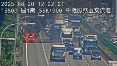 國1南下54.3公里桃園路段,今天(20日)中午12時許發生火燒車事故,一輛停在路肩的自小客車起火燃燒,黑煙直竄天際,這起事故造成後方車流嚴重回堵,目前起火原因和傷亡情況不明,警消人員已前往現場搶救中。