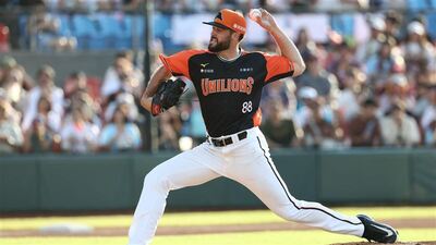 統一獅新洋投奧德銳。(圖/統一獅提供)統一獅新洋投奧德銳24日首次開箱,面對樂天桃猿4局無失分,總教練林岳平對於本場表現給予肯定,希望下週的第2次投球,可以把狀態準備到5局。