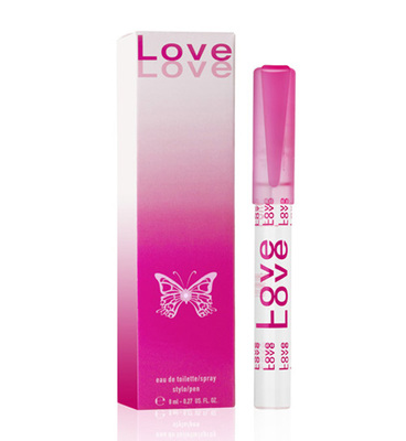 Love Love de toi- 戀愛物語瓶身柔軟、彎曲的線條就像是年輕美眉誘人的腰部曲線,瓶身的中下方,彷彿是年輕美眉穿著可愛中空裝,露出性感的蝴蝶紋身,同時鑲著閃耀小鑽的肚臍環,展現出青春洋溢的氣息,增添許多男性遐想,吸引眾人目光。粉色漸層式的瓶身與外盒色調,除了代表著女性溫柔又不易窺視的神秘與浪漫外,也注入年輕的甜美鮮味,讓人愛不釋手。