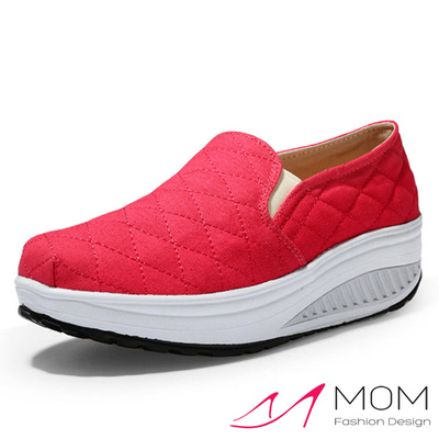 【促銷】【MOM】歐美流行款經典菱格透氣帆布懶人休閒搖搖鞋 健走鞋(粉) 找信用卡購買優惠
