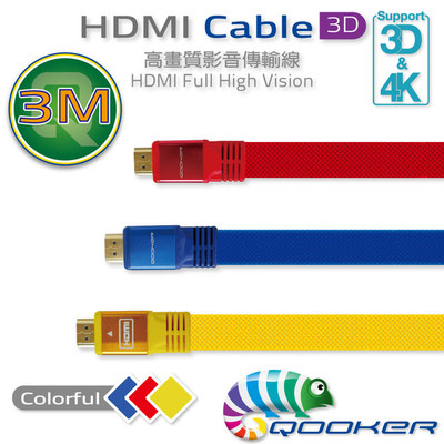 【滿額免運】【酷可-Qooker】HDMI-1.4版-3D高畫質傳輸線(金屬編織線-3M) 本周限量商品優惠