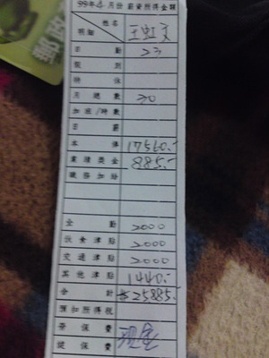 我說 我說五月份 ~~ 領了第一份薪水 還有 還有 ~~ 過了母親節 總感覺 今年有好多好多的特別不一樣 我說 我說 我領了 25885 元喔 薄薄的薪水 可是 有我的努力喔 而且 而且 剛進公司...