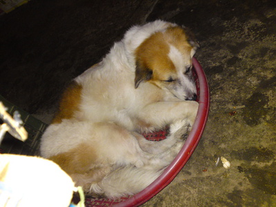 我說 可愛的來福 最近因為 貪吃”骨頭”所以 便秘了 卡住了 想嗯 嗯不出來 痛的唉唉叫 媽媽很天才的 在來福的肚子上面 擦上萬金油是不是 是不是 我也不知道 有沒有療效....不過 狗狗的身上...