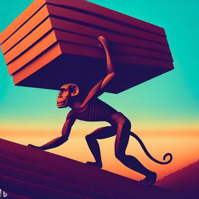 夢見一隻猩猩抬著石棺爬上丘陵高地,