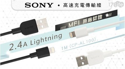 【本日刷卡購買商品折扣】SONY Lightning高速充電傳輸線1M(CP-AL100) 周年慶刷卡購買最省錢