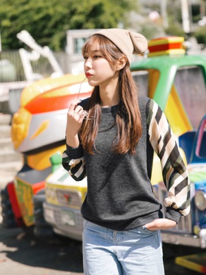 袖子拼接的設計讓整體穿搭多了變化性\\r\\n隨意搭配都能在熙攘人群中成微亮點~