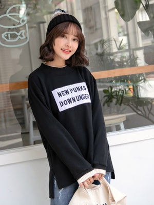【哪裡買最省錢】不倒絨英字貼布繡假兩件上衣 本周刷卡優惠